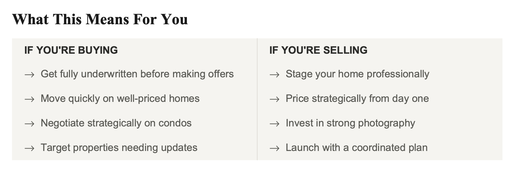 Whether you're buying, selling, or simply understanding your home's value, I'm happy to provide a personalized market strategy for your situation.